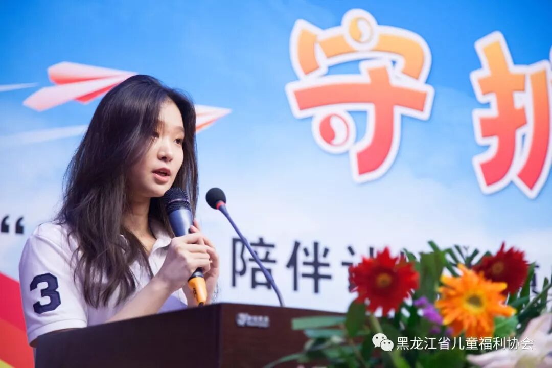 首先,由黑龙江省儿童福利和收养中心主任付春雨进行发言,为各孤残儿童和留守儿童感谢大家的捐助与关爱,少年强则中国强,愿黑龙江省内各儿童福利院的孩子们长大后都能够成为我国的栋梁之才。