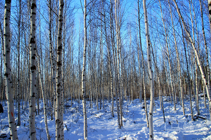 ③冬天白桦林里面被大雪遮盖住,地势坑坑洼洼高低不平,走路游玩的时候要谨慎小心。