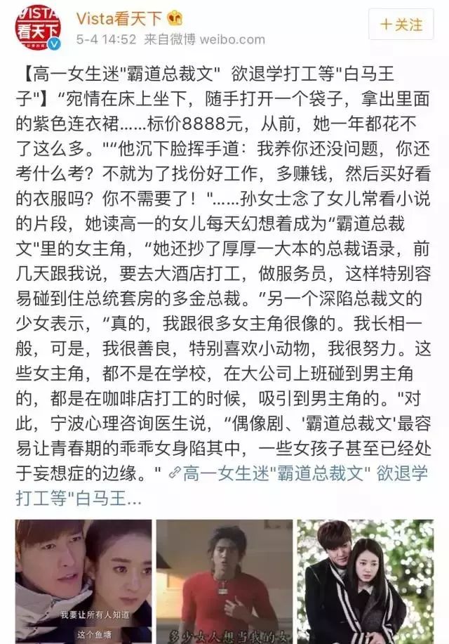 看到这一定会有人说:“没人会把电视剧当真,大家就是看个热闹”。那你一定是没看过之前的那则新闻:一个女孩去酒店当服务员,就是为了能偶遇那些住总统套房的霸道总裁。