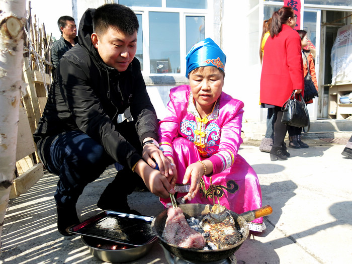 伴着赫哲歌曲敬宾酒歌,游客们走进渔家乐,渔家乐院内现场熟制鱼皮、烤塔拉哈吸引了游人的目光,看到室内火炕、鱼皮衣服、民族服饰等,游客们充满了好奇心,不禁想亲身体验,试穿一下民族服饰、掷嘎啦哈、与赫哲老人留影,感受着独特的赫哲风情。