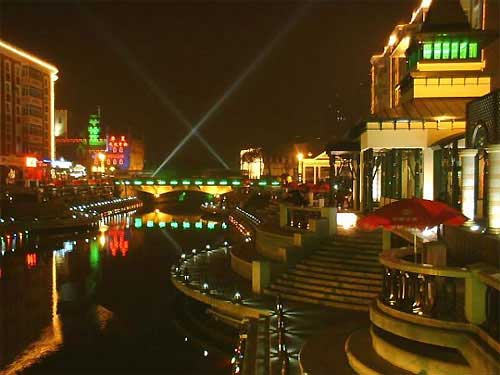一条带的改造除了对楼体、道路的整体修饰外,同时在彩化、绿化上也费尽功夫。街路局部花钵、花器将体现欧洲风情的精品,街两侧电杆线路全部下落,采取互动式、点缀式铺设具有欧洲风格的150个大型景观灯,整条街路配置了庭院灯、水体灯、栅栏灯等辅助灯饰,同时配以楼体射灯,形成参差错落的五彩缤纷的灯饰景观大道。