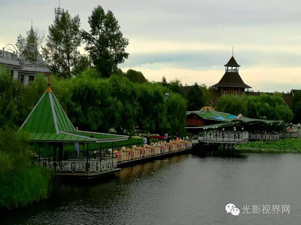 三十多处经典的俄罗斯建筑被它完美地荟萃在了这片空间里。走近它,瞧着掩藏在树荫里一幢幢漂亮的俄罗斯房子,觉得自己就像漫步在伏尔加河畔的美丽乡间,漫步在那片异域风光里。