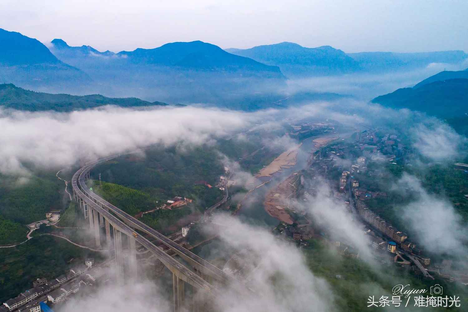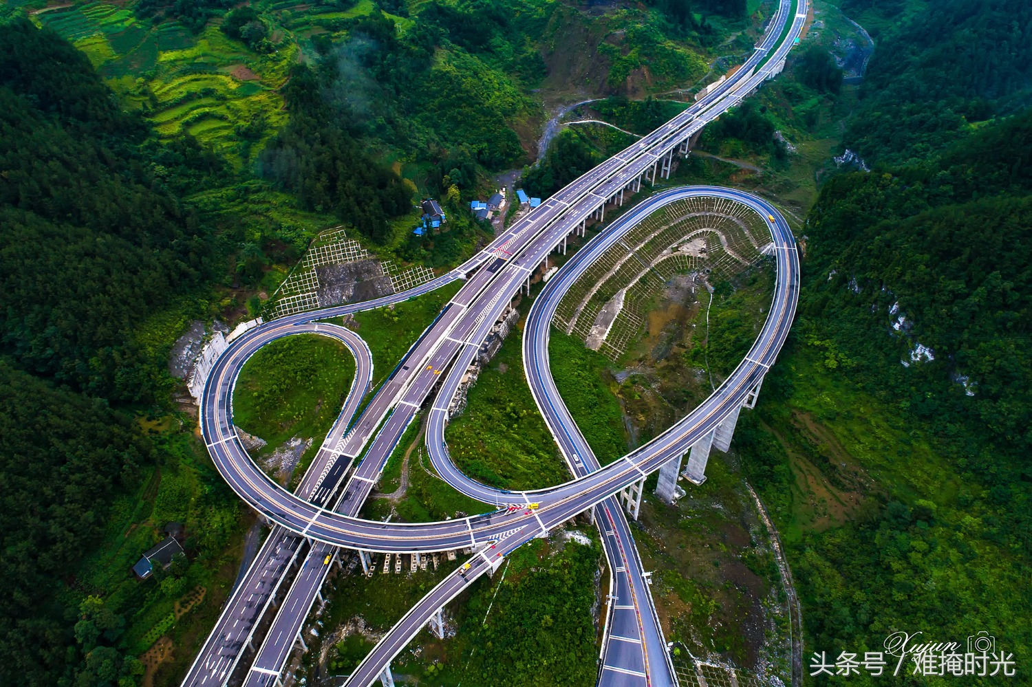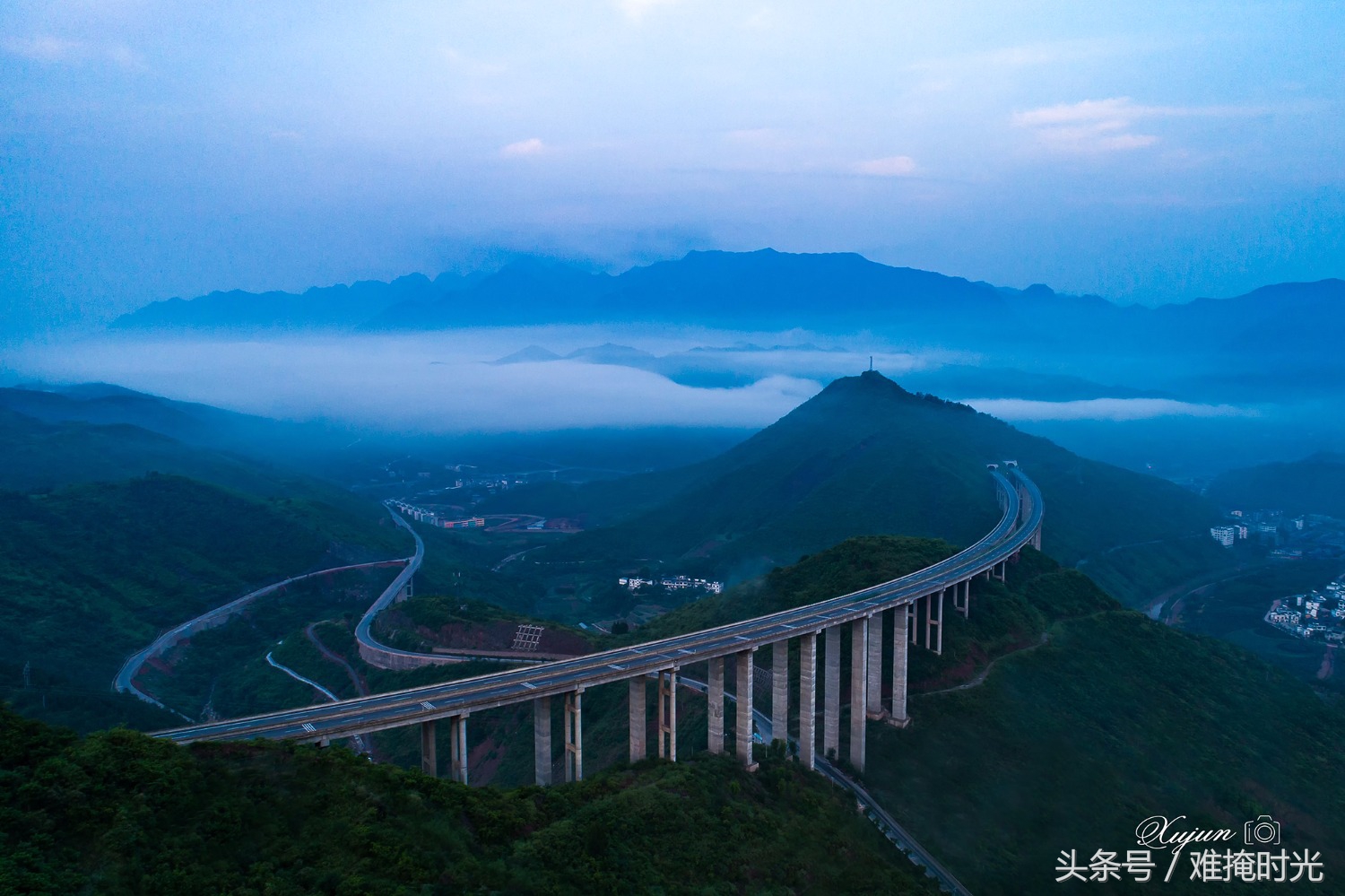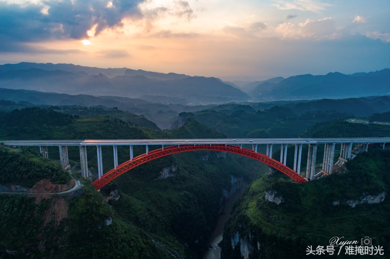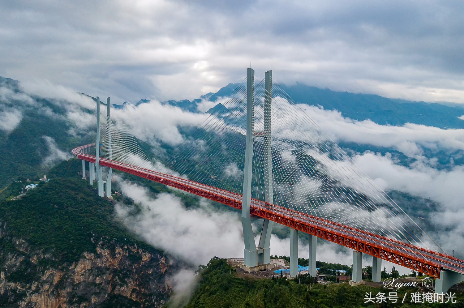 北盘江第一桥位于云南省和贵州省交界处,大桥主桥为钢桁梁斜拉桥,该桥全长1341.4米,桥面到谷底垂直高度565米,相当于200层楼的高度,为目前“世界第一高桥”。