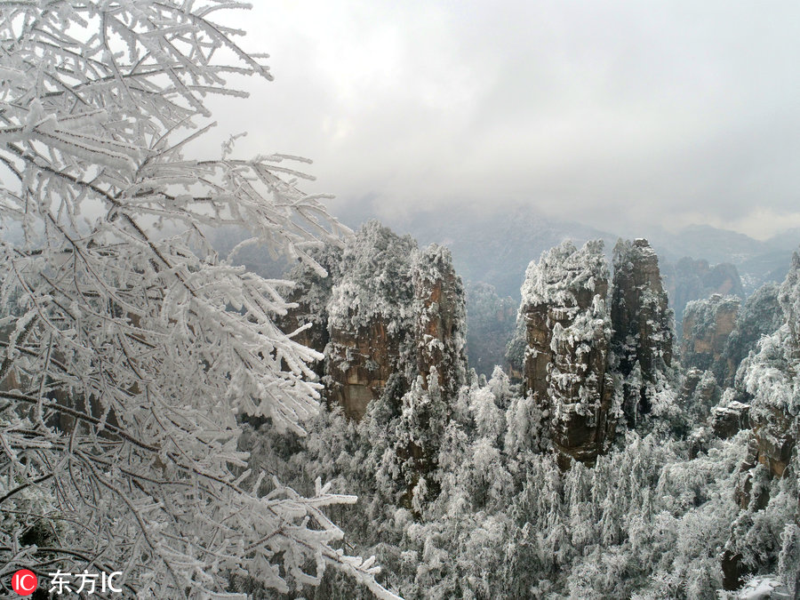 无人机jrs电脑直播_极速体育无插件直播_jrs直播极速体育的湖南张家界市武陵源黄石寨景区雪后美景。受低温冰冻雨雪天气影响,降雪过后的湖南省张家界武陵源黄石寨景区变身“冰雪世界”,沟壑峰林银装素裹,玉树琼枝晶莹剔透,美如画卷,让人目不暇接。