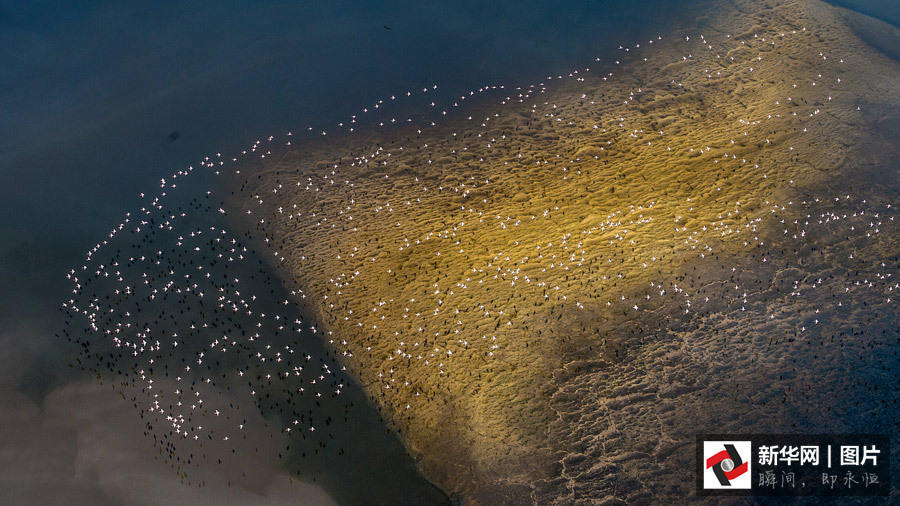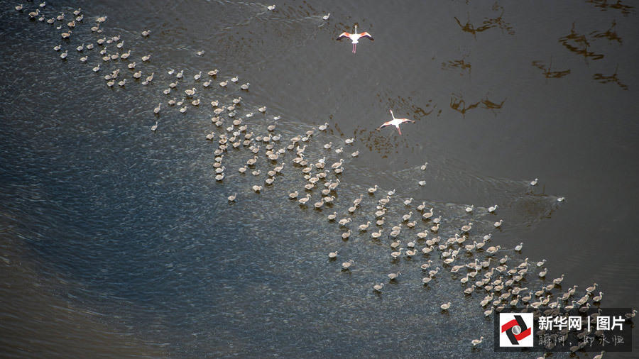 【艺术摄影】 遥望湖心,能看到那密集的黑影,光影交替,湖水也变换着彩妆,有时是碧蓝的海水,有时是碧绿的宝石,有时是紫红的玫瑰,火烈鸟成群地腾飞,铺天盖地,犹如天空的一团烈火在煽动,壮观至极。