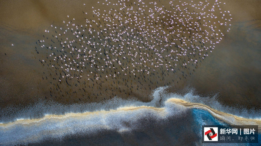 【艺术摄影】数以万计的火烈鸟有些埋头吸食着海藻,有些在水中漫步休闲,有的嬉戏打闹乱作一团,它们时而拍打翅膀翩翩起舞,时而一时兴起展翅飞翔,成群的火烈鸟在水面上踏出串串涟漪飞向空中,不一会它们又斗转星移慢慢滑翔降落在湖中。
