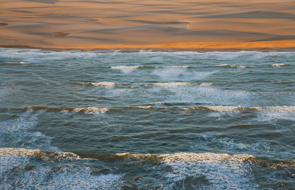 大西洋和纳米比亚的纳米布沙漠相接之处。(网页截图)
