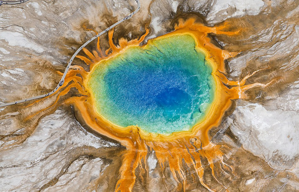 来自英国小镇克茨沃尔特(Cotswolds)的55岁自然风光摄影师彼得·亚当斯驾驶轻型飞机、直升机和旋翼机,花费多年在全球众多着名旅行圣地的千米高空拍摄照片,向人们展示了从美国黄石公园到非洲纳米比亚的纳米布沙漠等景点的绝美风景,唯美抽象宛如画作。