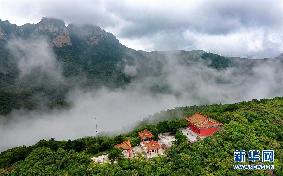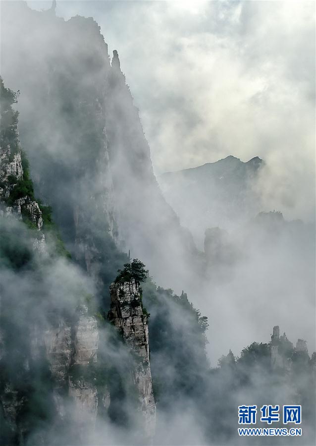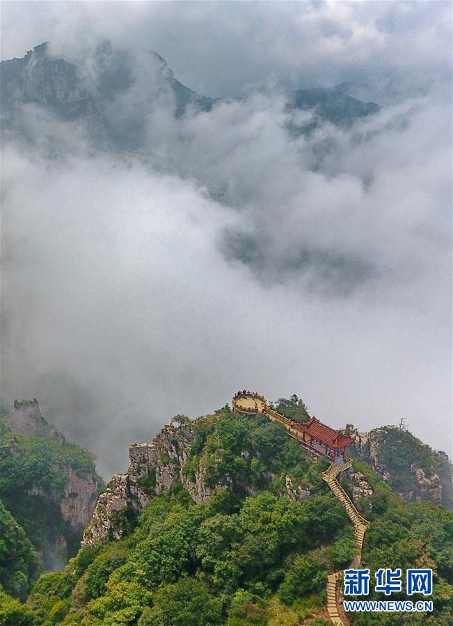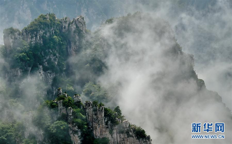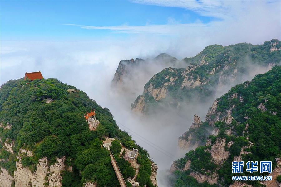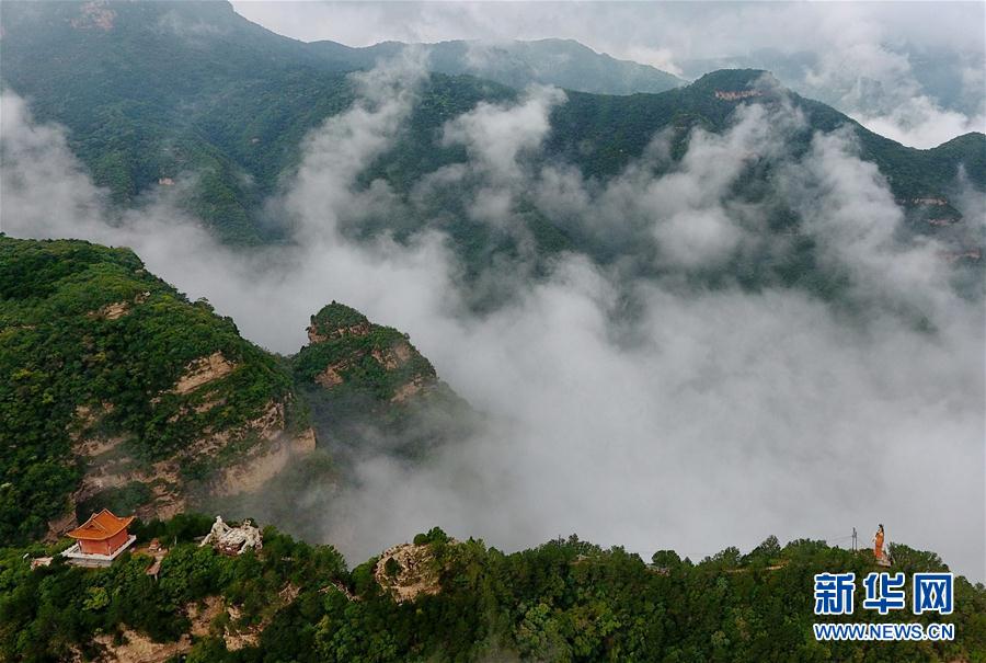 这是8月31日拍摄的五老峰景区美景。近日,受降雨天气的影响,山西省运城市五老峰景区出现云海景观,宛如一幅山水画。新华社记者曹阳摄