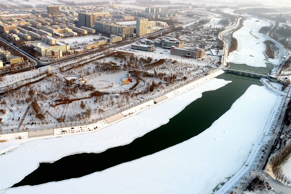 隆冬到来百花迹已绝,唯有新疆开都河畔雪花开烂漫。2018年1月31日,新疆博湖县经历一场降雪天气,雪花漫天飞舞,洋洋洒洒铺落在开都河畔,把博湖县妆点的银装素裹,分外妖娆。让人不禁想起一句诗“忽如一夜春风来,千树万树梨花开”的美景。雪后初霁的博湖银装素裹、玉树琼枝,皑皑白雪与开都河、楼群交相辉映,美景醉人。