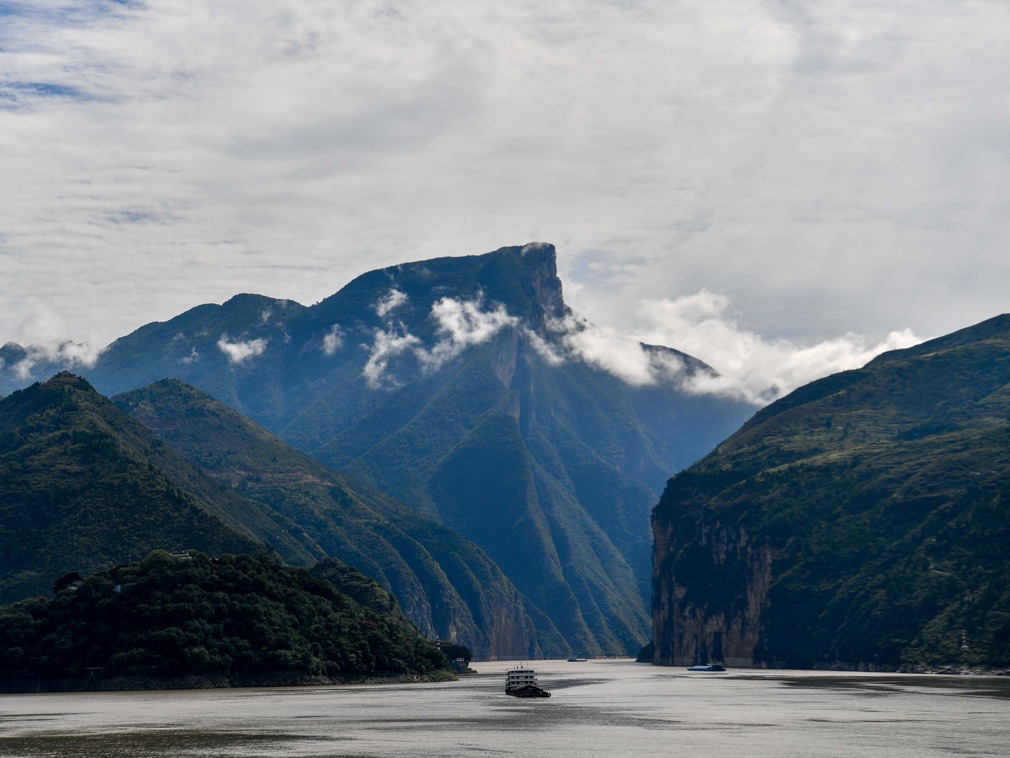 图为长江重庆万州区段两岸布满葱绿的树木。据了解,长江三峡库区森林覆盖率现已经达到50.2%。