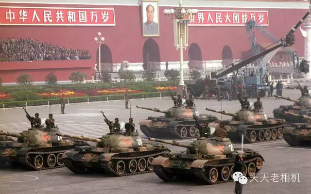 1984年10月1日,北京,改革开放再阅兵。在国庆的游行队伍中,农民开着拖拉机,载着“联产承包好”的牌子经过天安门广场