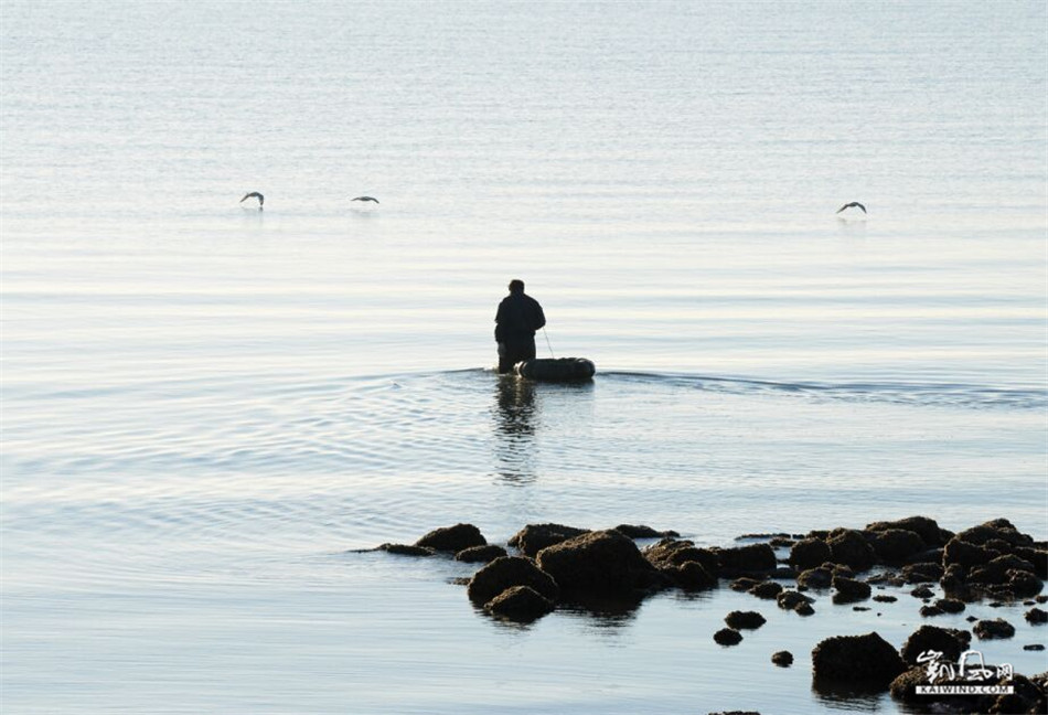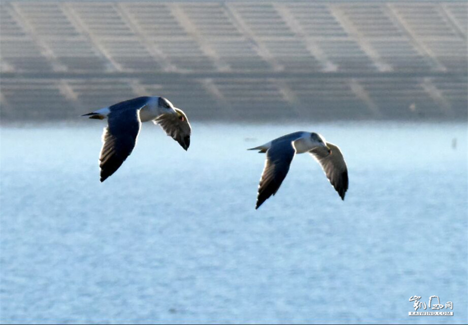 海鸥在水面上飞翔,打破了湖面的平静,偶尔泛起几道涟漪,水面上泛起一层层浪花,打在江边,发出哗哗声。