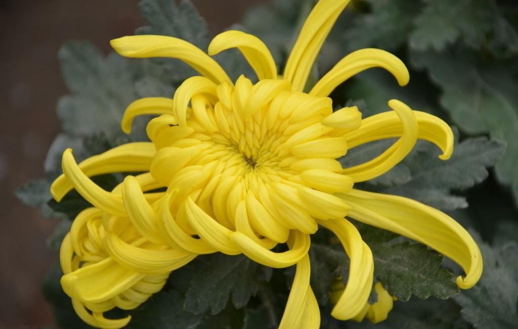 东篱雨染黄金发,南圃霜凝紫绣球。