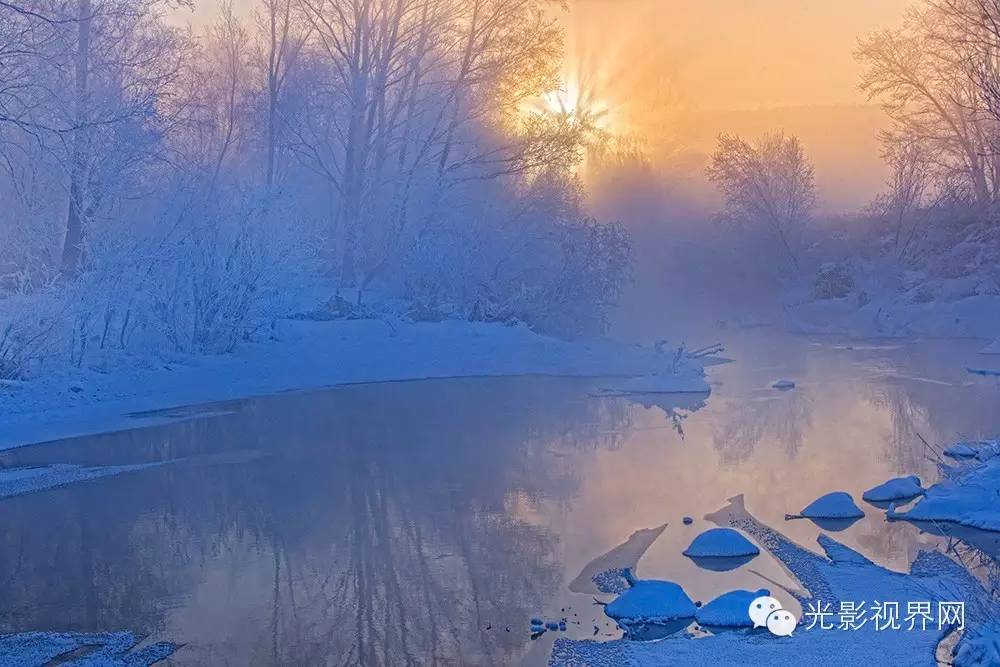 清晨 ,步行在沿江的长堤上,银树琼花,晶莹玉洁。顿觉“忽如一夜春风来,千树万树梨花开”的妙境,好像置身于童话世界。村庄农家的缕缕青烟慢慢飘上蓝天,和白色的篱笆、白色的屋顶、白色的农具等外物浑然一体,使整个世界一片银装,只有屋檐下挂的串串红辣椒,显得格外醒目耀眼。走进银色世界,沐浴晨光,感受自然,体验寒冷,寻找谧静,江上雾气缭绕,云蒸霞蔚,江水中的冰排相互碰撞溅起的水花又落在冰上,发出清脆悦耳的声响,时而,也有被堵塞的冰排冲出,就好像脱缰的野马,奔腾不息,顺流而下,去追逐自由。头顶上不时地有喜鹊叽叽喳喳地飞过,鞋底踩在道路的积雪上,发出咯吱咯吱的声响,共同演奏出一曲美妙和谐的交响乐,给这宁静的江畔增添了几分神秘和灵气。