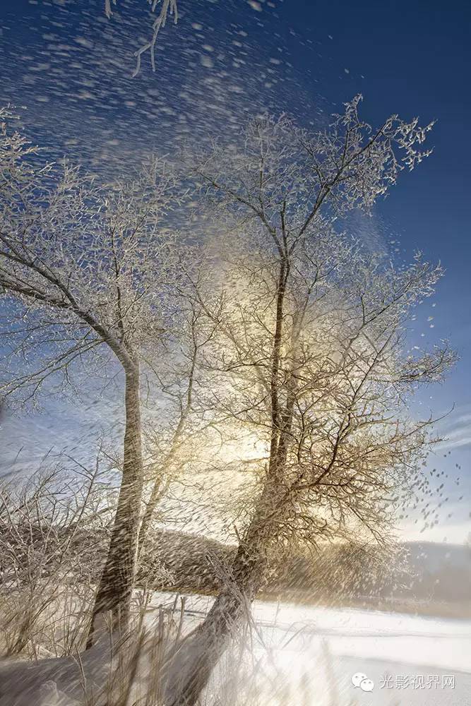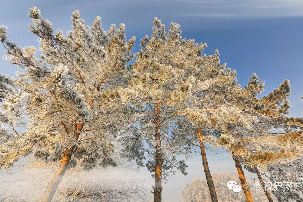 冬天的北疆,江河封冻,万物沉睡,到处白雪皑皑,银装素裹。凡是到过这里的人,都要去感受一下滑雪场里戏雪的乐趣,观看黑龙江冰面上的冰雪汽车拉力赛惊险刺激,品一品东北农家的酸菜猪肉炖粉条,坐一坐狗爬犁,滑一滑冰车,抽一抽冰尜。感受神州北疆之无限乐趣,会让人流连忘返,回味无穷。尤其是北疆的雾凇,更是远近闻名。这年的冬,我有幸目睹了神怡已久的玉树琼花。