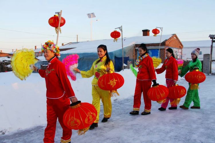 富锦市旅游局为朝阳村挂起了红红的大灯笼