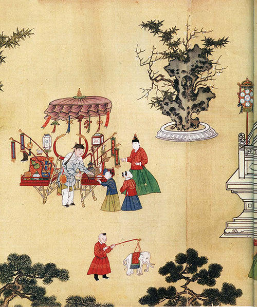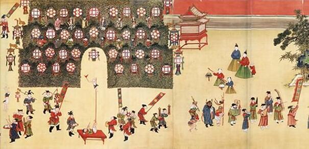 出自明代宫廷画师之手的《宪宗元宵行乐图》将明宪宗在皇宫里庆赏元宵游玩的各种情景进行了生动的描绘。
