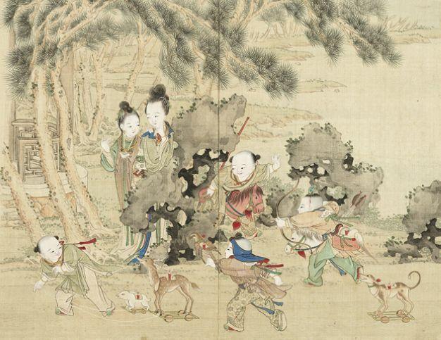据了解,庆祝元宵节的时间最长的应该是明朝,从正月初八开始一直到正月十八才结束,整整10天,而在宋朝庆祝元宵节的时间只有5天,到了清朝则是3天。清代一位画家在《升平乐事图》(共十二开)中描绘了宫廷仕女、孩童闹元宵的场景。第十开《鹿灯》记录了童子骑着红白竹马道具,手执叉戟与弓箭,前方孩童手举鹰灯,后有狗形车灯,另一童子牵着兔鹿车灯跟随,玩着骑射出猎游戏,一片欢乐。