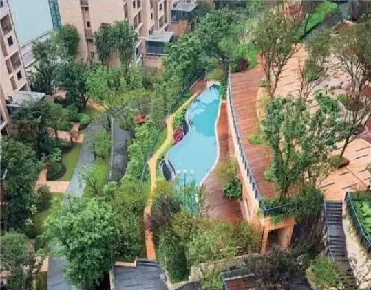 还有这种梯田一样的小区,看看那游泳池,真够惊险的…