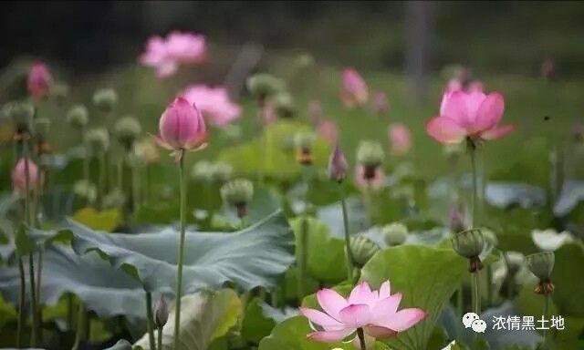 每个叶柄的顶端都蕴含着一个鲜活的生命,它们有的含苞待放,看上去好似青春少女,呈现出一幅欲放还羞未经世面的朦胧之美;有的已豪迈绽放,远远观去,恰如一位婀娜多姿的少妇般艳丽动人,它们秀丽中不失端庄之态,妩媚中更有不骄不腻之感,嫣然自得。