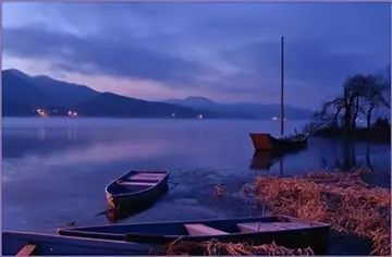 广阔的水面十分明净,山峰翠绿的影子倒映其中。忽然江面波涛汹涌,一个渔翁驾着小舟在风浪中掀舞。见此不由得想起了宋玉的《风赋》,像宋玉这样可笑的人,是不可能理解庄子的风是天籁之说的,硬说什么风有雄雌。其实,一个人只要具备至大至刚的浩然之气,就能在任何境遇中都处之泰然,享受到无穷快意的千里雄风。