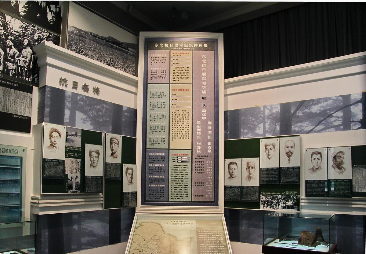 《黑土英魂——东北抗日战争时期烈士事迹陈列》展示了在东北14年艰苦卓绝的抗日战争中,为民族独立和人民解放英勇不屈、前仆后继的抗日英烈的事迹,由序厅及5个陈列厅组成。序厅主要展示日本侵华政策的制定与战争准备以及反日先驱的斗争事迹。第一陈列厅为“民族危亡时刻”,主要展示九一八事变、江桥抗战和东北抗日义勇军爱国将领的斗争事迹。第二陈列厅为“创建人民抗日武装”,主要展示中国共产党创建东北反日游击队、东北人民革命军和这一时期抗日英烈的斗争事迹。第三陈列厅为“夜幕下的抗日斗争”,主要展示在日伪统治中心从事地下斗争的共产党员、爱国青年和国民党爱国志士的事迹。第四陈列厅为“东北抗日武装的脊梁”,主要展示东北抗日联军的建立和发展,以东北抗联为主体的社会各阶级、各阶层、各民族以及不同国籍的抗日英烈的事迹。第五陈列厅为“抗日战争的最后胜利”,主要展示东北抗联教导旅配合苏军出兵东北对日作战,取得东北抗日战争和世界反法西斯战争最后胜利的历程。