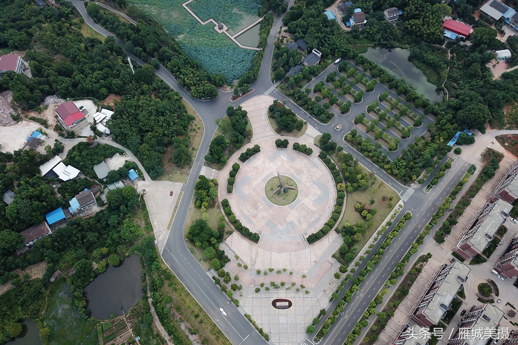 南湖公园东临红湘南路,南临跃林路,西临高岭路,北临雨母路,总面积3700余亩。图为公园南大门广场和停车场。