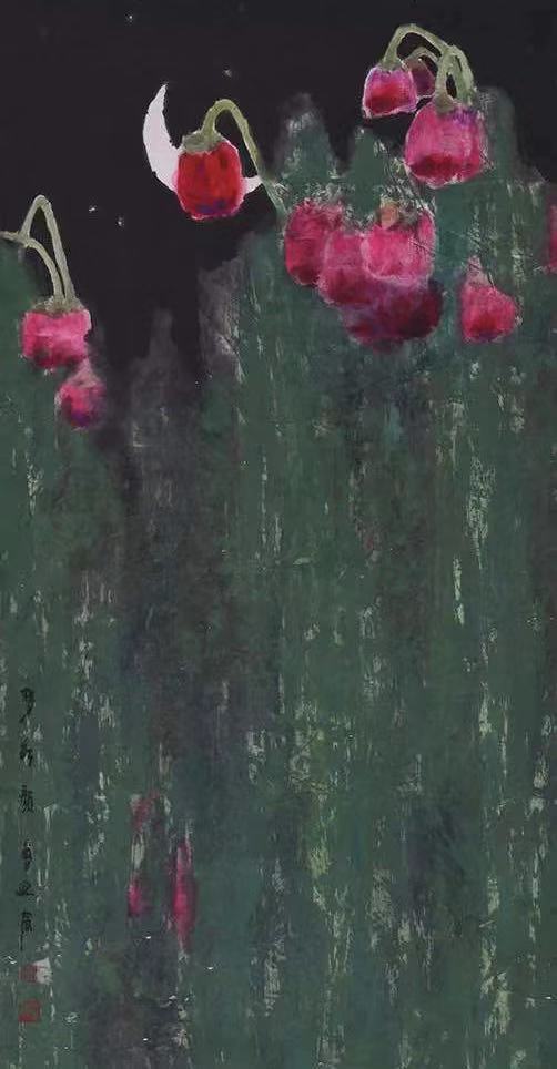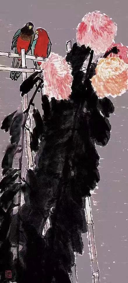 曾迎春的早期作品多半是工笔重彩画,题材以花鸟和风景为主,绘画风格基本上可以说是“气象峥嵘,彩色绚烂”,追求“错采镂金的美”或“华丽繁复的美”。其近期作品多半是水墨写意画,题材仍以花鸟和风景为主,但绘画风格已从绚烂变为平淡,追求“芙蓉出水的美”或“平淡素净的美”。从绚烂之极的工笔重彩画《臻吉之光》到归于平淡的水墨写意画《如是红尘》,画风迥异,判若两人。女画家人到中年,人生阅历更加丰富,艺术风格逐渐成熟,正如苏东坡所说:“渐老渐熟,乃造平淡。其实不是平淡,绚烂之极也。”她这种平淡是一种更高级、更纯粹的绚烂。