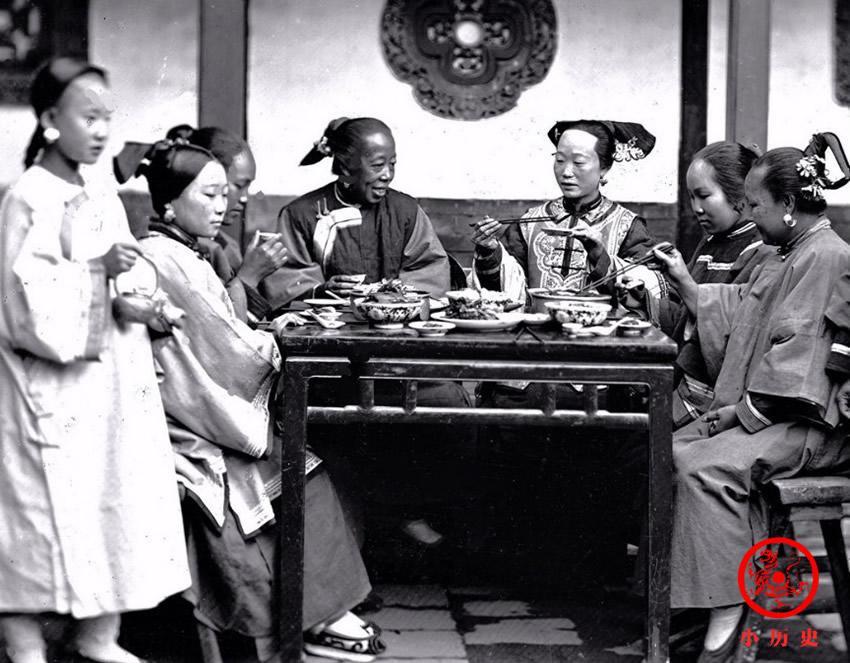 一个满族家庭的女眷在吃饭。