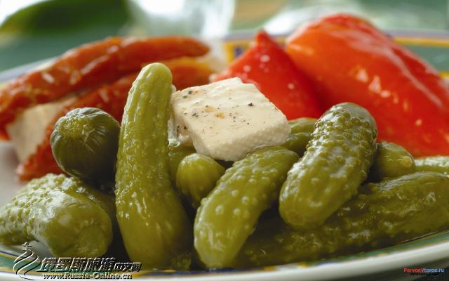 腌菜种类繁多,一般俄罗斯人最喜爱的是酸黄瓜。