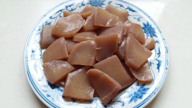 2.锅里煮水,水开后放入魔芋片焯烫至水再次沸腾后捞出。