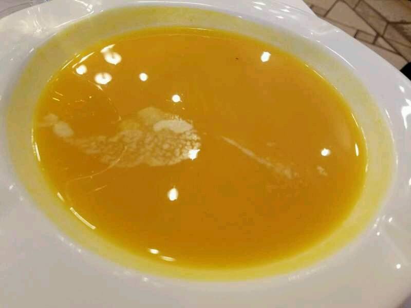 奶油南瓜汤,浓浓的瓜香和奶香,丝滑细腻香甜的口感,这两个汤作为餐前的甜汤真的很不错。
