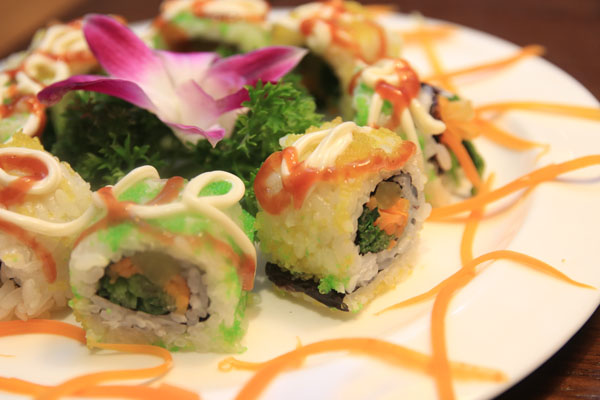 店内还有一些可口菜品可供小公举们选择,芝士玉米就是非常不错的选择,看着咕嘟咕嘟慢慢融化的芝士,最后和玉米、火腿融合在一起,入口香甜让人回味。厨师新研制的麻辣鸡爪,可是下酒的绝佳菜品,鸡爪切碎,经特殊调料调制,更加入味。五颜六色的寿司刚刚端上桌时就把肚子里的馋虫勾引出来啦,不仅造型摆盘精美,味道也更是吸引人,精美的造型着实让小公举们不忍心啊。