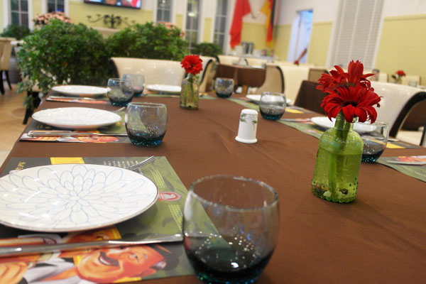 环境:餐区分为三个部分,户外餐区木质的座椅,还有鲜花和斜阳伞的点缀。工业区的重金属风格和花园模式和北美田园区的清新与简致,每个座子上还有鲜艳的红花摆设,让环境整洁明朗。