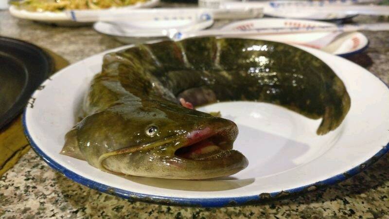 东北的菜,多是两两搭配,一起下锅,大火狂炖,东北人过年必杀猪,大块大块地切下来,有亲友来访,便和粉条一起下锅炖之。这家店里的铁锅主要有几种,鸡,鱼,排骨,鹅等。选好了锅,还可以在里边加一些配菜。我们选择的排骨锅,加土豆,粉条,白菜,玉米,还加了一条鲶鱼。