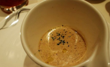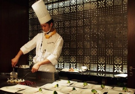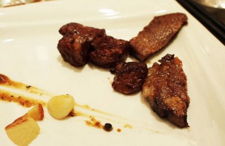坐在大厅的唯一好处就是可以面对面的欣赏到厨师的娴熟厨艺,以铁板为舞台,烹制各色海鲜、肉类、蔬菜,听着滋滋作响的美妙声音,呼吸着食物产生的香气,真的是视觉、嗅觉、味觉的三重享受。蓝莓水果鹅肝细腻柔滑的滋味总是让人流连忘返,说它“销魂”一点也不为过,每吃一次都会被征服,而鹅肝作为世界三大美食之一,也是时常被烹制成豪华大餐。炭烤牛仔骨印象深刻,火候掌握的恰到好处,入口嫩得几乎是嚼而即化,七分熟刚刚好。