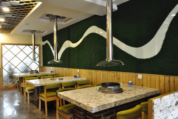 刚刚开业不久的一家店,装修风格简单粗犷,处处都透露着草原风情,无论是墙上的壁画还是每一处的装饰,都明确的告诉你这家店的招牌特色,那就是手把签,用竹签穿起来的大块肉,类似于烧烤,却又大不相同,不仅味道让人惊喜,还能享受烤制的过程,看着肉从生到熟,直到香气扑面而来,闻到阵阵的肉香。
