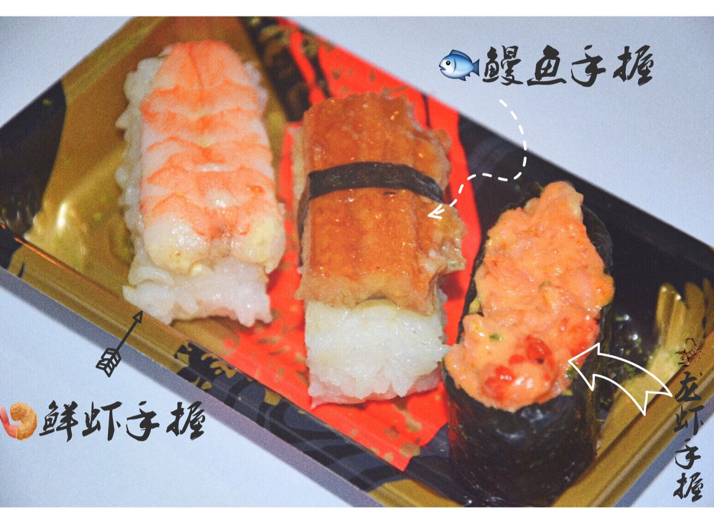 整只大虾的鲜美,大块鳗鱼的满足,芝士蟹柳的香软,都是寿司的经典所在。