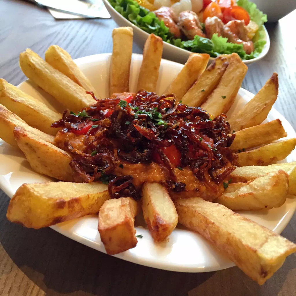 说了这么多重口,来点清淡的吧,我真心觉得她家的沙拉都炒鸡好吃的,“鲜橙老虎虾沙拉”十分小清新,光看虾的这种弯曲程度就知道很新鲜,虾已经都剥壳去虾线处理的很干净,配着橙子、龙眼和圣女果,很解腻爽口,适合女生点。“烤鸡沙拉”分量很足,我是对沙拉里的蔬菜没有抵抗力的那种人,口味很好,烤鸡也很有味。“黑松露蘑菇”朋友点的,朋友是它死忠粉,我却不太感冒,中规中矩吧。