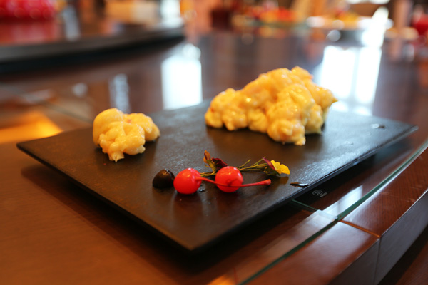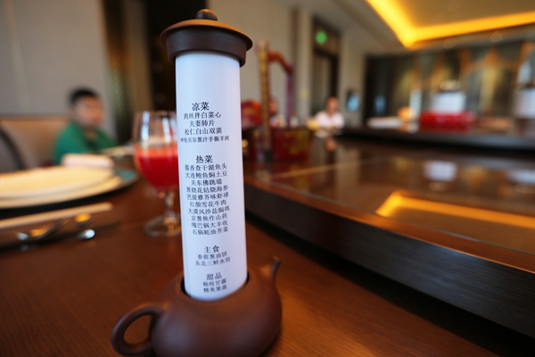 景园中餐厅的空间设计在保持典雅清新的就餐环境的同时,增加了玻璃画绢的设计手法,通过中式的图案结合屏风的形式凸显中餐厅的特质,无论是矗立门口的小石狮,亦或者是表达天圆地方的方桌和圆桌组合,每一处设计都包含着一些寓意和小心思,景园中餐厅共有6间大小不一的包房,每件包间内的水晶雕件概念均源于松花江完全融化前晶莹剔透的冰凌,配合中餐厅主营的东北菜,让每位宾客都能领略到到东北菜的真正魅力所在。