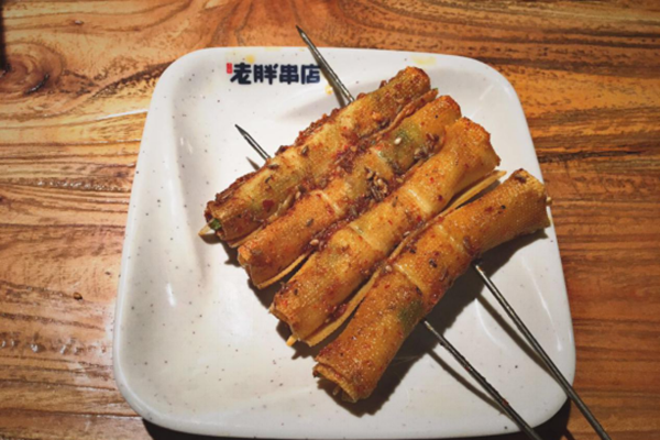 传统的烤牛肉串都是肥瘦相间,吃多了可能就会觉得腻,他家的牛肉串没有肥肉相衬,也没有多余的香料修饰,就是原滋原味的牛肉,佐以盐,少许的辣椒和孜燃,别有一番滋味。最值得一提的就是干巴肉,有一种童年牛肉干的味道,及其有嚼劲,细细品味还有一种浓浓的腌渍过的牛肉香,一个人就得撸好几串,不过牙口不好的建议食用。除了常见的牛肉串和羊肉串,他家的鸡肉串也是在别人家吃不到的,奥尔良料腌过的鸡腿肉,烤的滋滋冒油,甜度适中,软嫩可口,生津开胃。干豆腐菜卷可以说是烧烤中的必点菜,烤的酥脆的豆腐皮卷着清爽的香菜与辛辣的洋葱,一样让人爱不释手。
