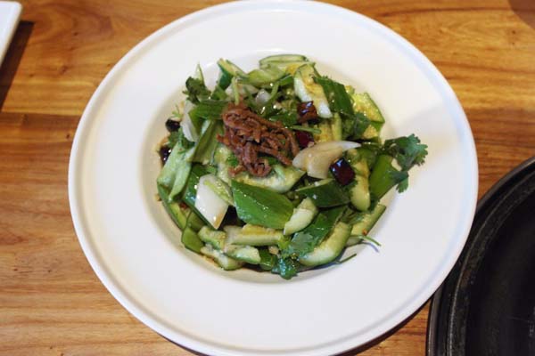 烤肉的时候,当然要来点爽口的。和以往的拍黄瓜不一样,采用水果黄瓜不但价格实惠而且爽口程度高香气浓。金枪鱼拌饭,料足的金枪鱼海苔等等。当然饭团要现场手工制作的,美女服务员会带上透明的手套手工抱团。牛肋条肉特别的嫩,而且还会有一条青虾藏在在坛子里面。小土豆真心不错,不能错过哦。长寿海带汤,韩国人在生日的时候,会喝海带汤,没有过多的腥的味道。汤里的碘各种营养成分对身体很好。干豆腐丝无论切工还是味道都很到位,酸甜可口、口胃大开。镇店之宝就是皇室拌饭,中午时间段是无限量免费提供。