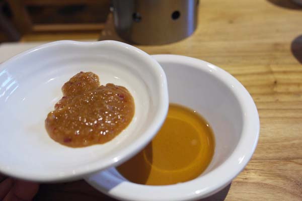 这里环境小资舒适,炎炎夏日室内空调足足的,当然也为热爱大排档的食客们提供力露天大排档。露天的环境也是别具一格,干净整洁,甚至还有装饰的小花。黑胡椒粉、海盐、干料在桌子上,可以调节烤肉的味道。蘸料的的口味也是和别家大不相同,是很多师傅们的研制出来,汁水解肉的腻,酱汁提味道,让烤肉更加的香。每桌六道压桌小菜,风格各异。围炉烤肉提倡自己烤制,肉制金黄用剪子剪开是烤肉的最大乐趣。