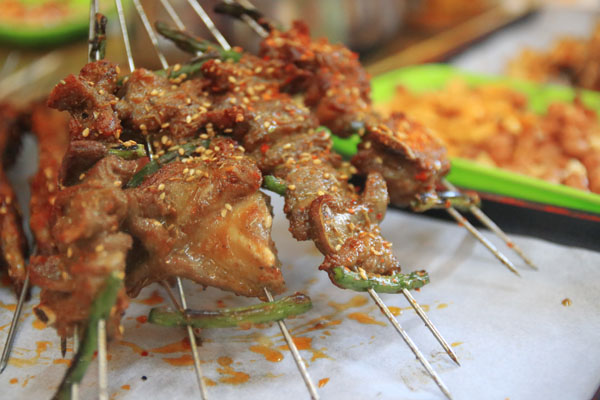 风味板筋让人眼前一亮,豪爽的板筋大串可是别家少见的,大可不必顾虑牙齿不好,后齿轻轻发力顺着板筋纹理便可大快朵颐,一口气消灭不是问题。风味猪皮块大满足,事先经过处理后口感软糯入口即化,满满一口胶原蛋白令人直呼过瘾,配上咸香适宜的辣酱后趁热吃口感最佳。秘制鸡翅,可见烧烤师傅技术了得,鸡翅外焦里嫩,外皮香糯入味,鸡肉多汁回甜。