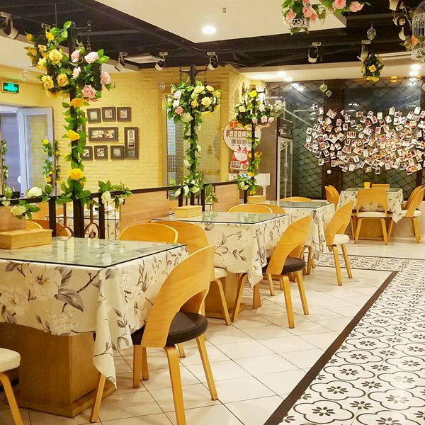 首先!必须!要赞一赞这家餐厅的环境!以“花”为主题的韩餐厅还是第一次遇见。一下电梯,映入眼帘的便是一群公仔排排坐!花厨的等位区被店主精心的布置成了公仔展示区,有kitty,蓝胖子,大白,还有小黄人,快快抱起来自拍,嘟个嘴再自拍,充分满足了小女生的自拍欲,当然那棵樱花树的布景也是美哒,一抹粉红色的回忆。花厨的等位区已经这么的美美哒,那用餐区还用说么。一进门,满满的都是花,虽说不是鲜花,但在这白雪皑皑的冬日,这些花花还是让人眼前一亮滴!铁艺的白色鸟笼,缠绕着鲜艳的花朵,高高的悬挂在天花板上,远远一望,甚是惹人喜爱,除了天花板的仿真花装饰,地板也是花朵图案的,甚至连桌布也都是花花,与此同时,在每个窗台上都有一束干花,被漂亮的纸张包裹,很是典雅!