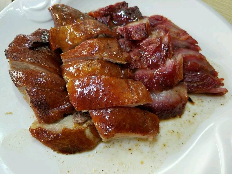烧鸭一般是先用秘制的酱汁腌制一段时间再放到炉里烤,外皮烧得鲜红诱人、脆而不硬,肉则是又香又嫩。烧鸭,味浓而不肥腻,我最喜欢的还是鸭皮,酥脆绛红,再佐以梅子酱汁,其滋味甘美无比。
