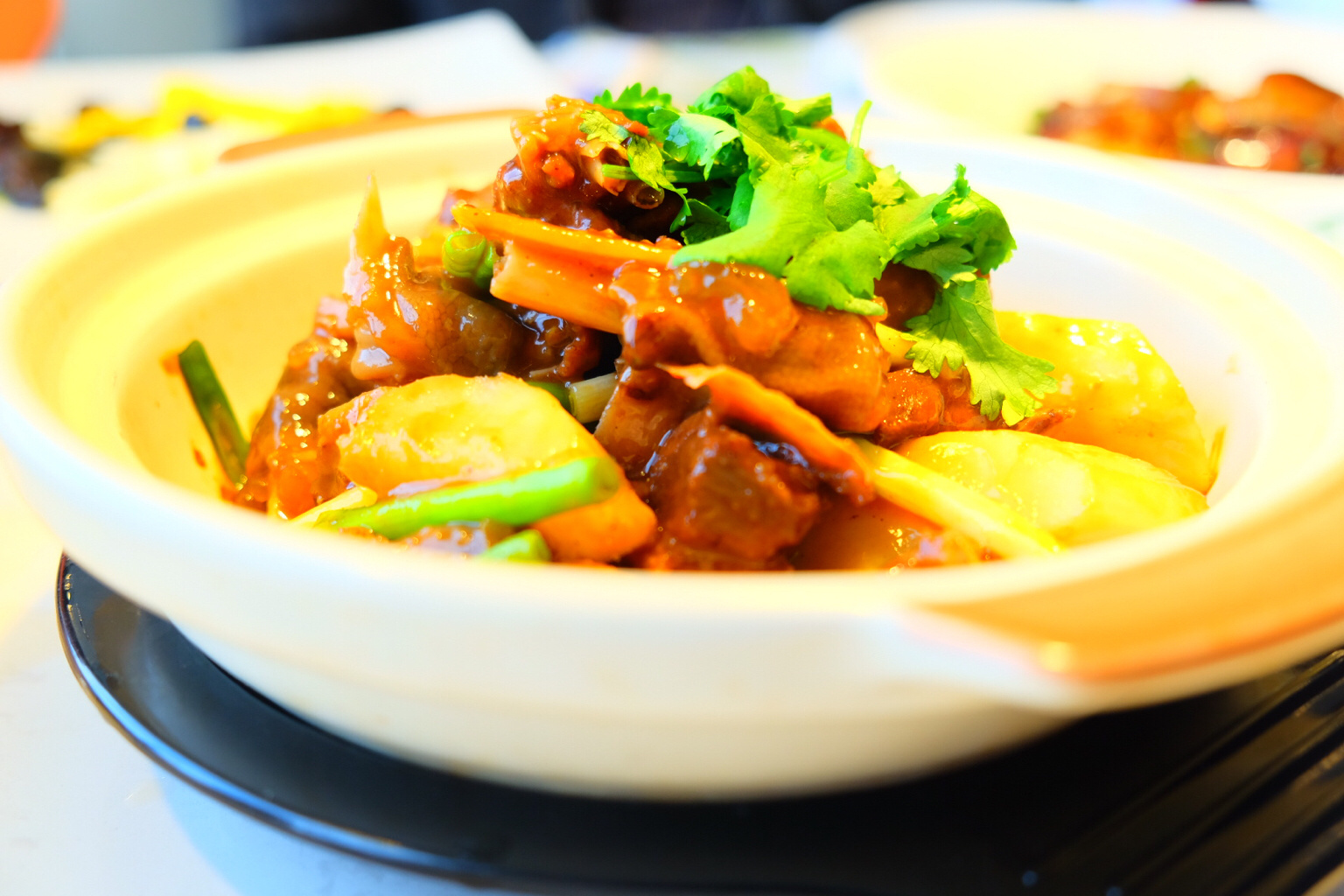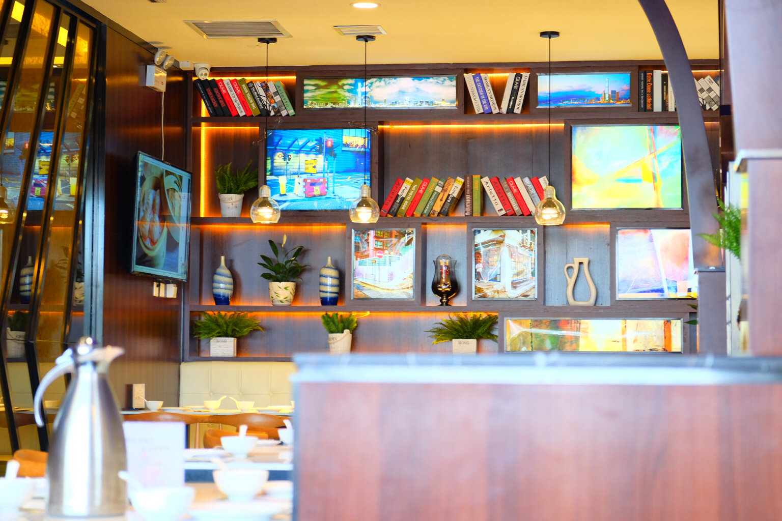 会展中心聚集哈尔滨特色美食,港港好融合餐厅就在其中.像其他港式餐厅一样,份量适中,环境安静舒适.同时也拥有出名的星空棚顶,找个靠窗的位子,在各色协调的光线下品一品刚刚好的味道.