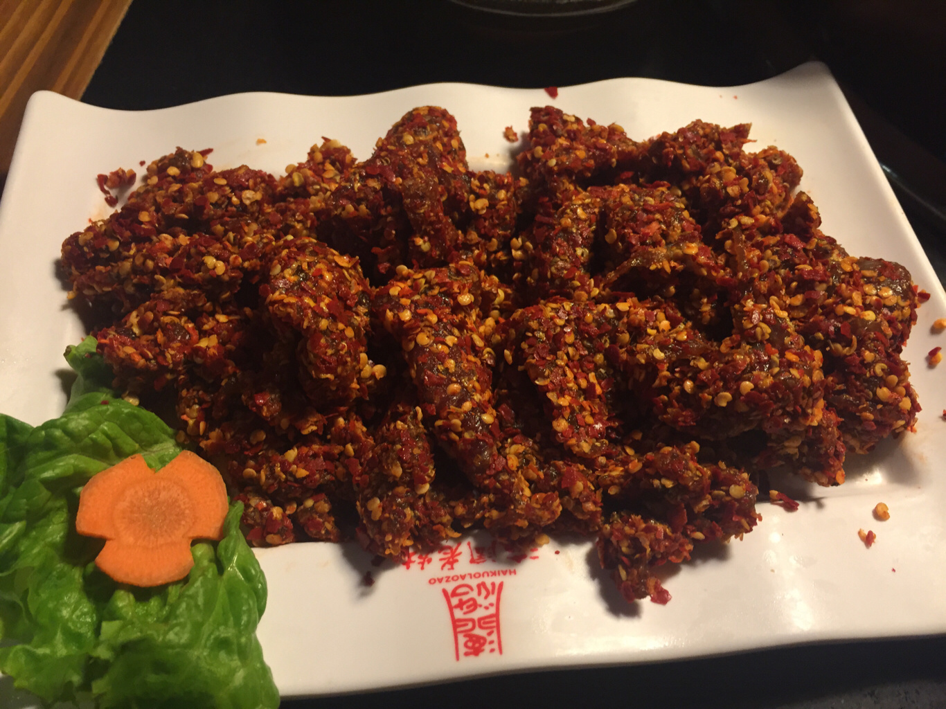 麻辣牛肉是预想的样子,上的很快,说是煮45秒就可以吃了在嘴里不能细嚼,因为细细品味会很辣很辣…