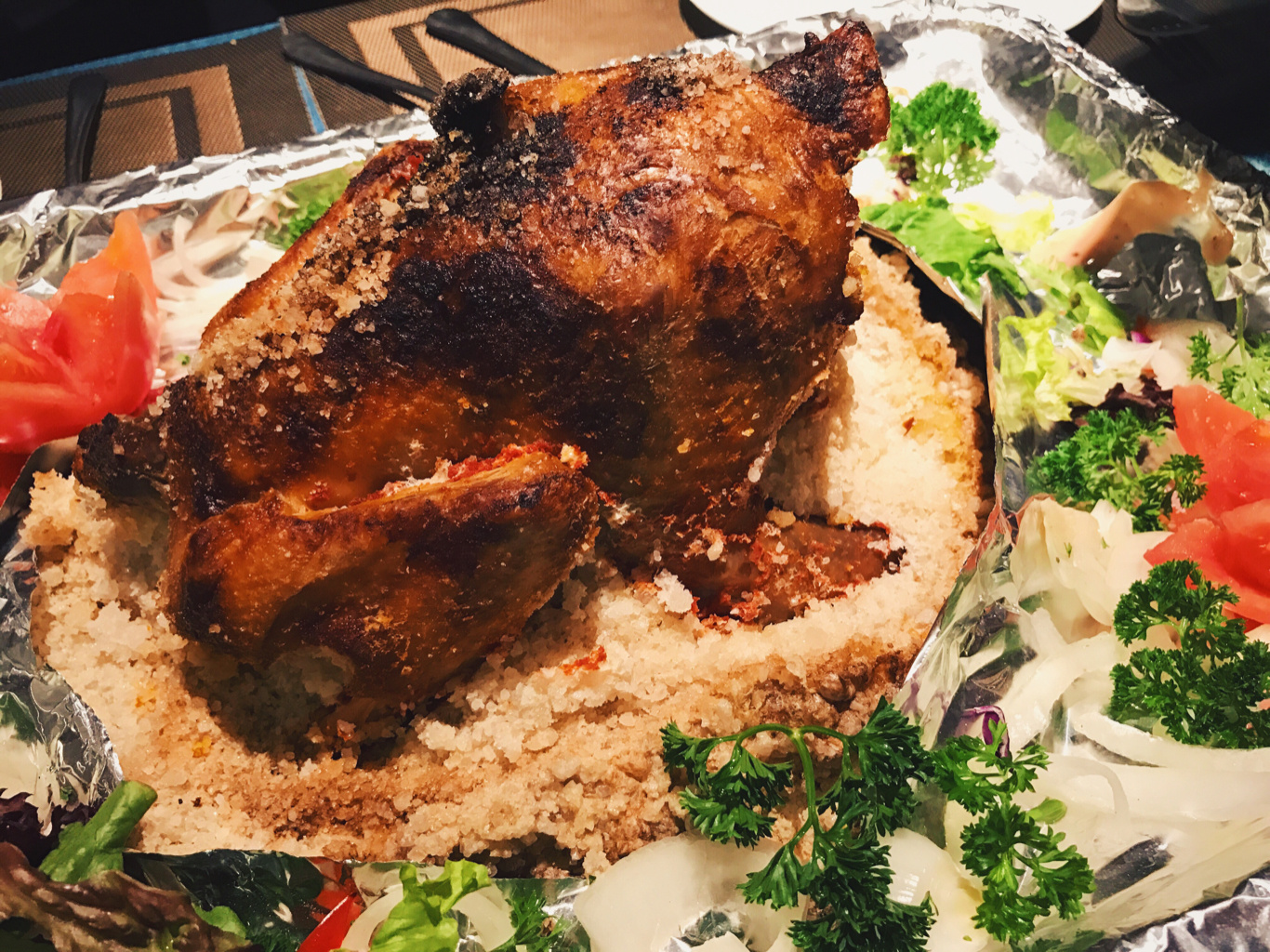 伊斯梅尔烤盐鸡:宝宝最爱吃鸡,这道菜没有离开过我的视线,鸡皮略咸,肉质很香。